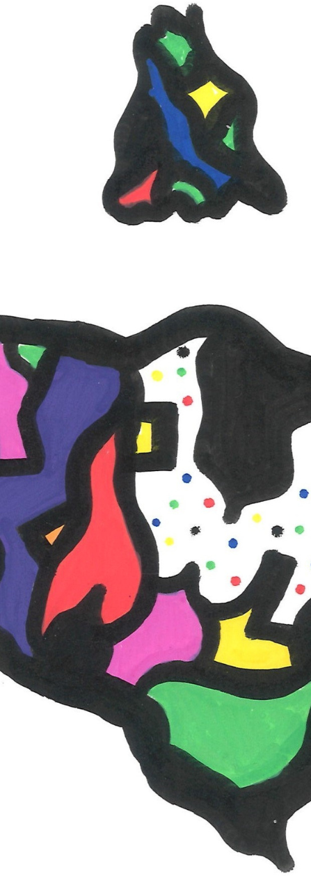 The polka dots stand out in the mix of color. At first glance, details in the negative space become the most exciting. In chaos, calm calls attention like the eye of a storm.